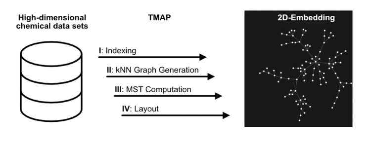 TMAP is a powerful visualization method capable of representing high-dimensional datasets as a 2D-tree. It can be applied in different domains apart from Chemistry. If you want to know more, you can check the original paper.